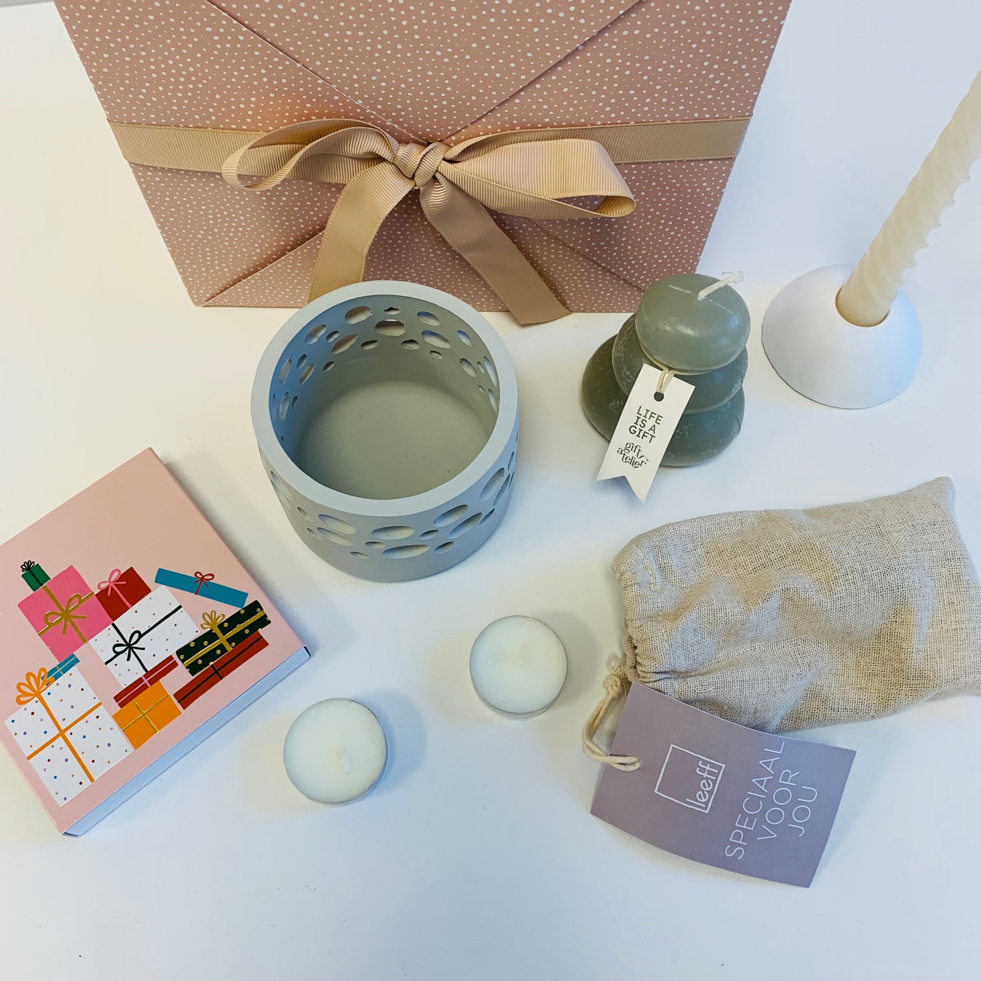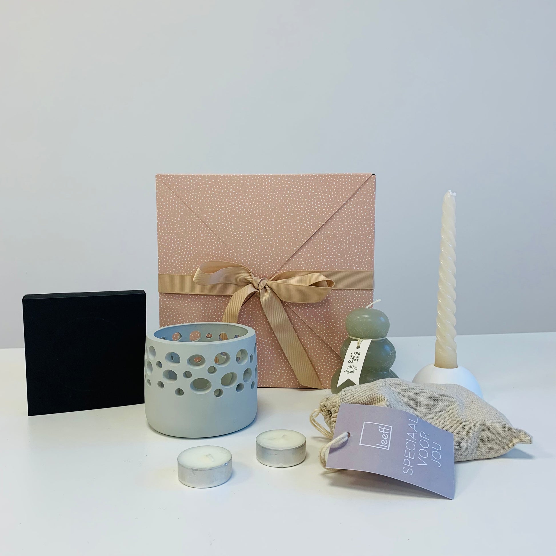 Light Your Candle box... de naam zegt het al, deze cadeaubox staat volledig in het teken van kaarsen. Hét perfecte cadeau voor iemand die graag gezelligheid in huis creëert.